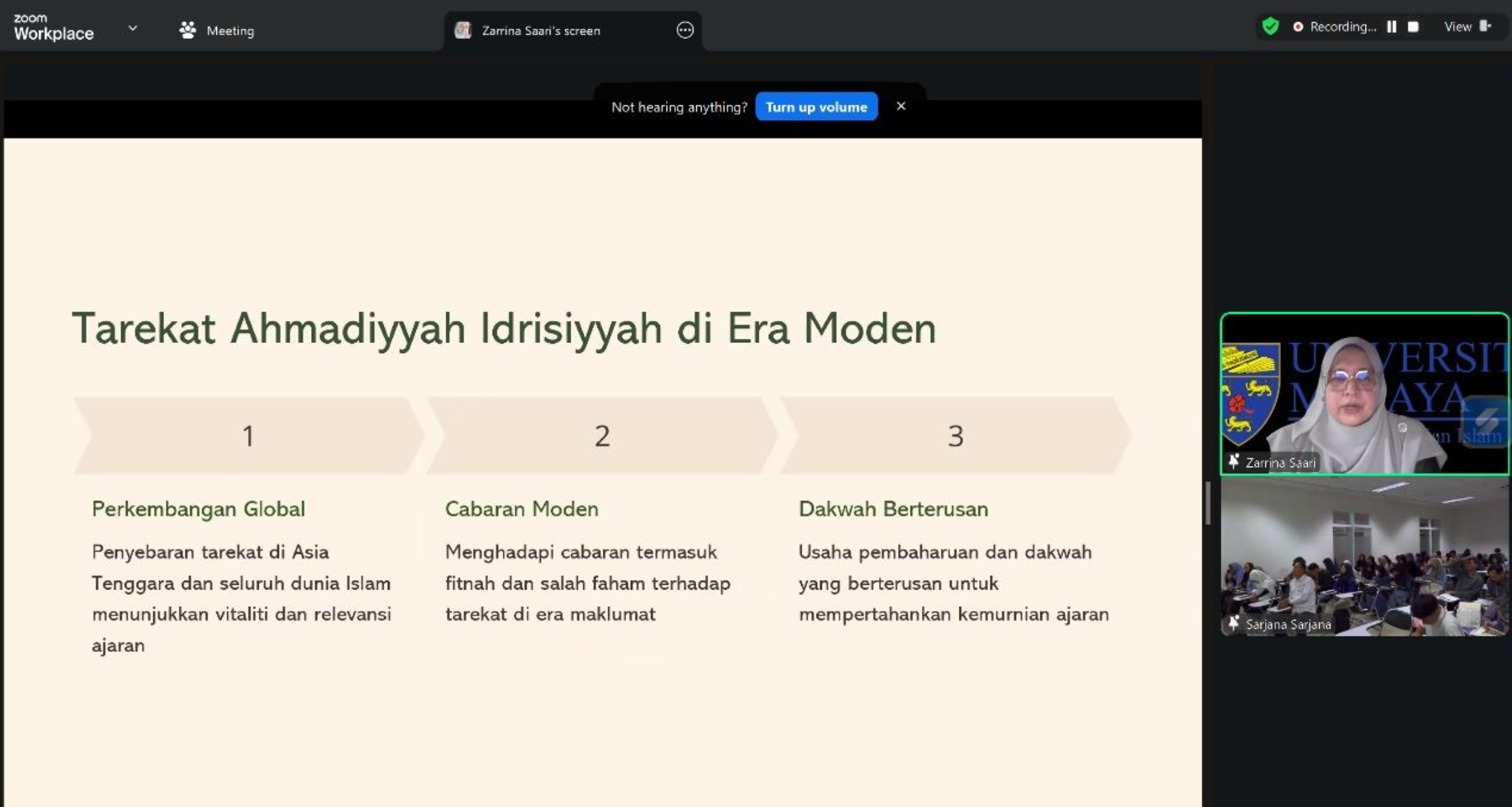 Dialog Akademik: Tarekat Ahmadiyyah Idrisiyyah dalam Public Lecture Prof. Dr. Che Zarrina binti Sa’ari