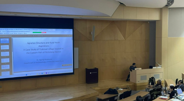 Yogyakarta, 6 Desember 2025 – Dr. Agung Wicaksono, dosen Departemen Antropologi Fakultas Ilmu Budaya UGM, menjadi narasumber dalam National Conference of Japan Society of Southeast Asian Studies (JSEAS) yang diikuti oleh lebih dari 500 peserta melalui Zoom Meeting. Dalam forum akademik tersebut, Dr. Agung mempresentasikan penelitian berjudul “Agrarian Structure and Rural Youth Aspirations: A Case Study of Trukosari village located in the Eastern Part of Pemalang District” yang menyoroti bagaimana generasi muda pedesaan di Jawa membangun aspirasi dan strategi hidup di tengah perubahan agraria dan menurunnya ketertarikan terhadap sektor pertanian.