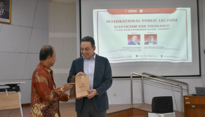 Yogyakarta, 13 November 2025 — Program Studi Magister Kajian Budaya Timur Tengah (KBTT) Universitas Gadjah Mada, berkolaborasi dengan Program Studi Sastra Arab, menyelenggarakan International Public Lecture dengan mengangkat topik “Scepticism and Tolerance: A Case from Premodern Islamic Thought” dan menghadirkan Prof. Ayman Shihadeh, seorang pakar sejarah intelektual Islam dari School of Oriental and African Studies (SOAS), University of London. Acara yang berlangsung di Auditorium Soegondo, Fakultas Ilmu Budaya UGM, ini juga disiarkan secara langsung melalui kanal YouTube Sastra Arab UGM sehingga dapat diakses oleh publik secara luas. Kuliah umum ini dimoderatori oleh Tohir Mustofa, M.A., dosen Program Studi Sastra Arab dan dihadiri oleh mahasiswa, baik dari program sarjana maupun pascasarjana.