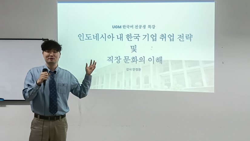 Kuliah umum dibawakan oleh Mr. Ahn Gyeong Hwan, Direktur Operasional PT. Komitrando. Dalam kesempatan tersebut, beliau menyampaikan materi bertajuk Strategi Kerja di Perusahaan Korea di Indonesia dan Pemahaman Budaya Kerja, yang mengulas peluang karier di perusahaan Korea, kualifikasi yang dibutuhkan, serta dinamika budaya kerja Korea (K-Work Culture).