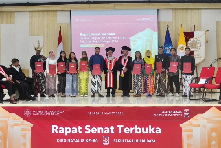 Yogyakarta, 03 Maret 2026 – Dalam rangka peringatan Dies Natalis ke-80 Fakultas Ilmu Budaya di Universitas Gadjah Mada, FIB UGM memberikan penghargaan kepada sejumlah mahasiswa berprestasi dari berbagai program studi. Penghargaan ini menjadi bentuk apresiasi fakultas terhadap dedikasi, capaian akademik, serta kontribusi mahasiswa dalam mengembangkan keilmuan di bidang humaniora.