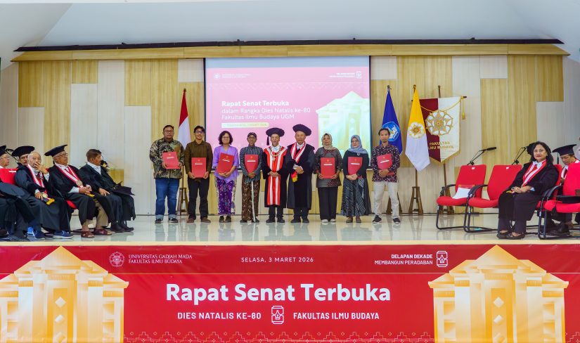 Yogyakarta, 3 Maret 2026 – Fakultas Ilmu Budaya (FIB) Universitas Gadjah Mada memberikan penghargaan kepada lima sivitas akademika berprestasi dalam rangkaian peringatan Dies Natalis ke-80 di ruang Auditorium Poerbatjaraka FIB UGM. Langkah ini menjadi bentuk apresiasi institusi atas dedikasi dan capaian para dosen maupun tenaga kependidikan dalam mengembangkan ilmu pengetahuan, pendidikan, serta memajukan masyarakat.