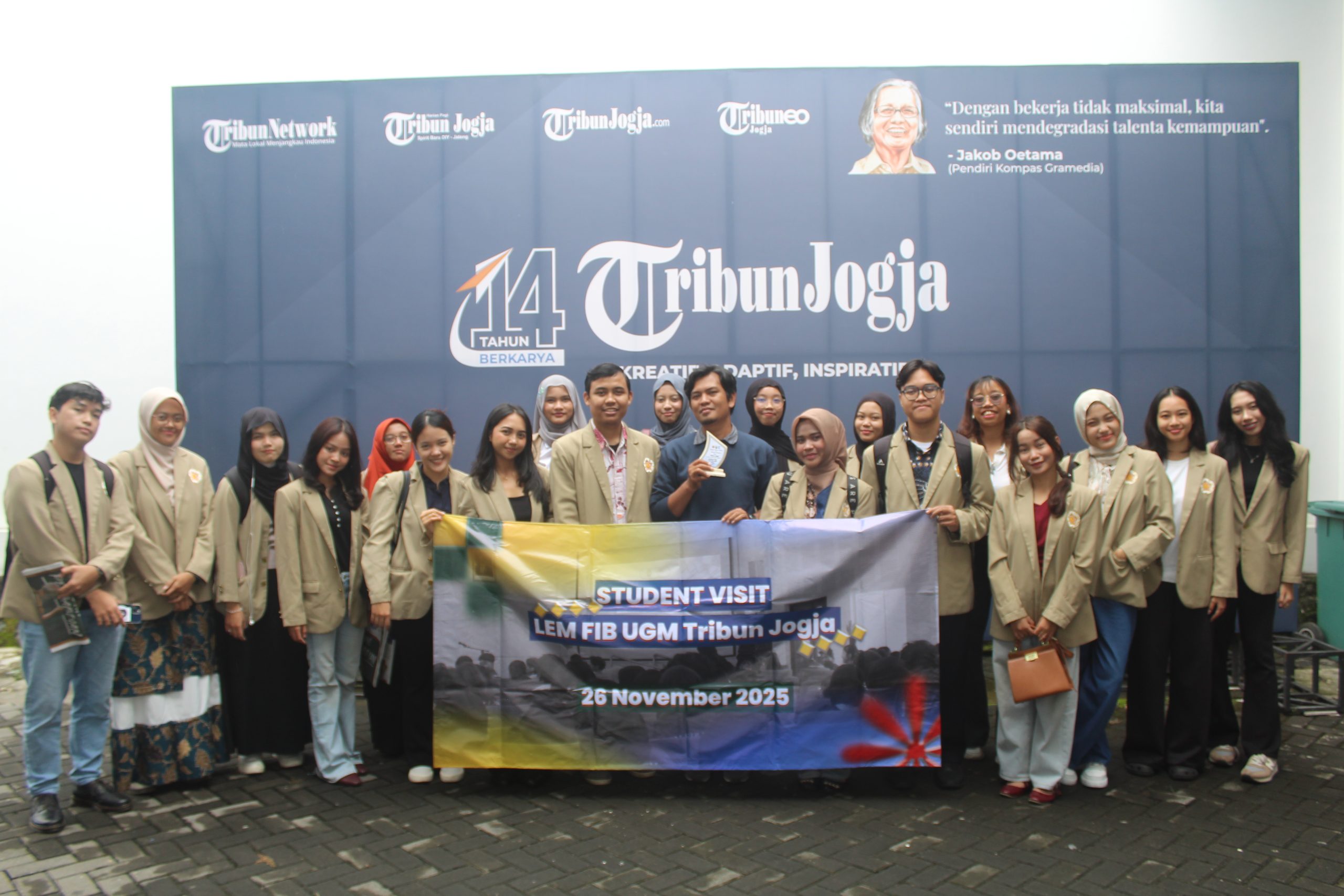 Yogyakarta, 26 November 2025 – Lembaga Eksekutif Mahasiswa (LEM) FIB UGM telah melaksanakan kegiatan student visit ke kantor Tribun Network Jogja pada hari Rabu, 26 November 2025. Student visit merupakan program kerja Kementerian Relasi Publik dan Organisasi (RPO) LEM FIB UGM sebagai rangkaian penutup kolaborasi yang bertujuan untuk mengembangkan wawasan, keterampilan, serta kontribusi langsung mahasiswa dalam dunia media dan komunikasi. Kegiatan student visit ini diselenggarakan di Ruang C kantor Tribun Network Jogja yang yang berlokasi di Jl. Ringroad Barat No 11, Nusupan, Trihanggo, Gamping, Kabupaten Sleman, Daerah Istimewa Yogyakarta.