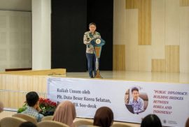 Yogyakarta, 20 November 2025 – Pelaksana Tugas (Plt.) Duta Besar Korea Selatan untuk Indonesia, Park Soo-deok, menyampaikan bahwa Indonesia menjadi satu-satunya negara di Asia Tenggara yang menjalin kemitraan strategis khusus dengan Korea Selatan. Hal tersebut ia ungkapkan dalam kuliah umum bertajuk Public Diplomacy: Building Bridges between Korea and Indonesia yang diselenggarakan oleh Program Studi Bahasa dan Kebudayaan Korea Universitas Gadjah Mada (UGM) di Fakultas Ilmu Budaya (FIB) UGM.